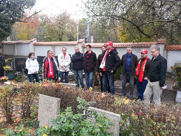 Svátek Dušiček je výzvou ke vzpomínce na naše předchůdce. Od roku 2011 se v rámci Odboru přátel vždy sejdeme v určitě skupině lidí a zavzpomínáme na slavné hráče sešívané fotbalové minulosti. Díky dvojici Čapek - Donner navazujeme na dávnou tradici našich vlajkonošů. Letos symboliku naváznosti umocnila vedle Michala Dobiáše ještě přítomnost internacionálů Jana Mareše a Dušana Herdy. Od původních čtyřech hrobů se nám s pomocí dalších daří objevovat nové. Letos tak akce začala u Š.Čambala v Ďáblicích, pokračovala hlavní akcí na Olšanech u V. Kopeckého, JW Maddena a F. Pláničky a na Vinohradském hřbitově u Jendy Koška. V maximu nás bylo ve skupině jedenáct! Navíc dva výše zmínění Č+D se zastavili na Malvazinkách u F. Veselého a v Jinonicích u A. Puče. Veleň + Kolín (Petráň, Janáček) navštívili ještě Vyšehrad a hrob P. Bicana. Navíc jsme se zastavili u hrobky A. Dvořáka, kde snad spočívá Jiří Sobotka. Naše čtveřice pak první fázi dne završila vydatným obědem na Zimním stadionu Slavie. Na celé akci osobně vyzvihuji to, jak každý svým dílem krásně přispívá k celé akci, která dle mého patří mezi základní kameny současné činnosti OP.